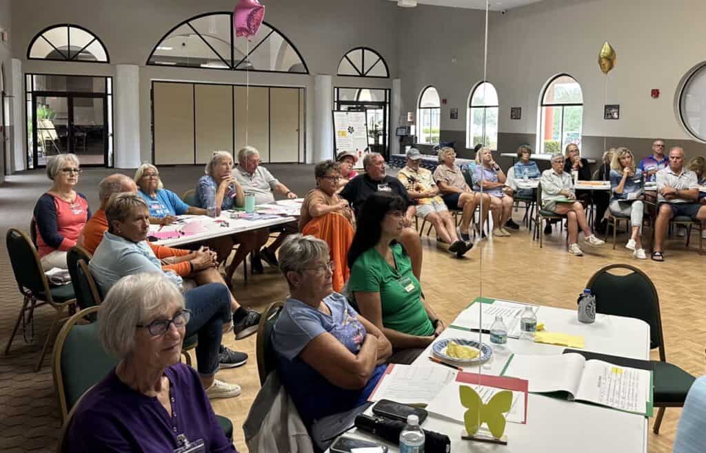 With a few new faces in each area, the activity was planned to help everyone put names with faces and feel more comfortable sharing the workload. Nearly 500 of the 729 homes have already been surveyed to ascertain our permanent residents who might need extra help during a disaster. The division of labor should lighten the load for each area. Block Captains are asked to become familiar with folks on their block who they may need to reach out to if a hurricane is approaching to secure shutters, get generators running, or provide information during power losses.