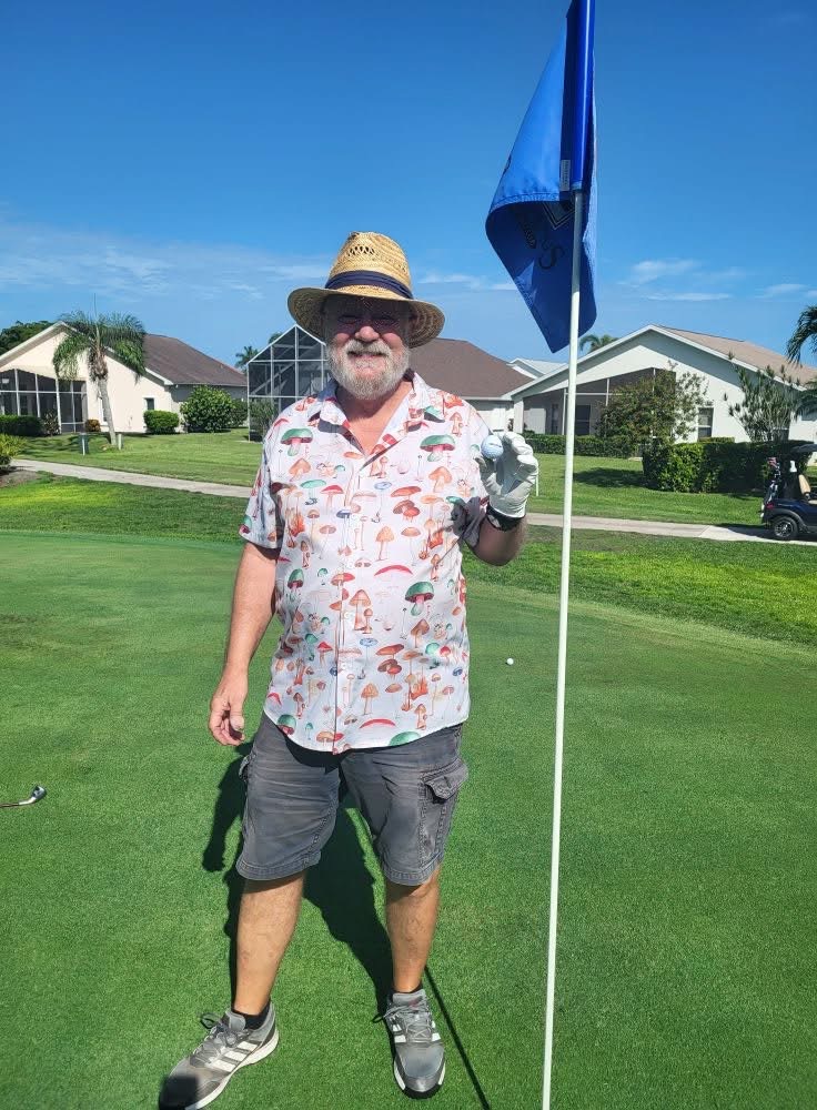 In early July, Wayne Armstrong had his first ace on hole No. 7. Wayne says: If you have ever played with me, you know how amazing that is. Wayne has been playing golf “full-time” since moving to the Fort Myers area three years ago from Indianapolis. He’s been a Sabal Spring resident for two years and plans to join the Men’s Golf League shortly. His hole-in-one ball is on proud display in his living room.