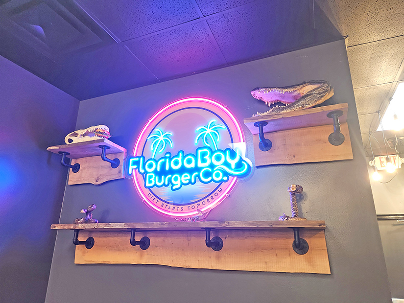 Recently, we tried Florida Boy Burger Co. on Del Prado in Cape Coral. Their décor revolved around gators, even some babies in an aquarium, and cowboys or “crackers” as they’re called in Florida.