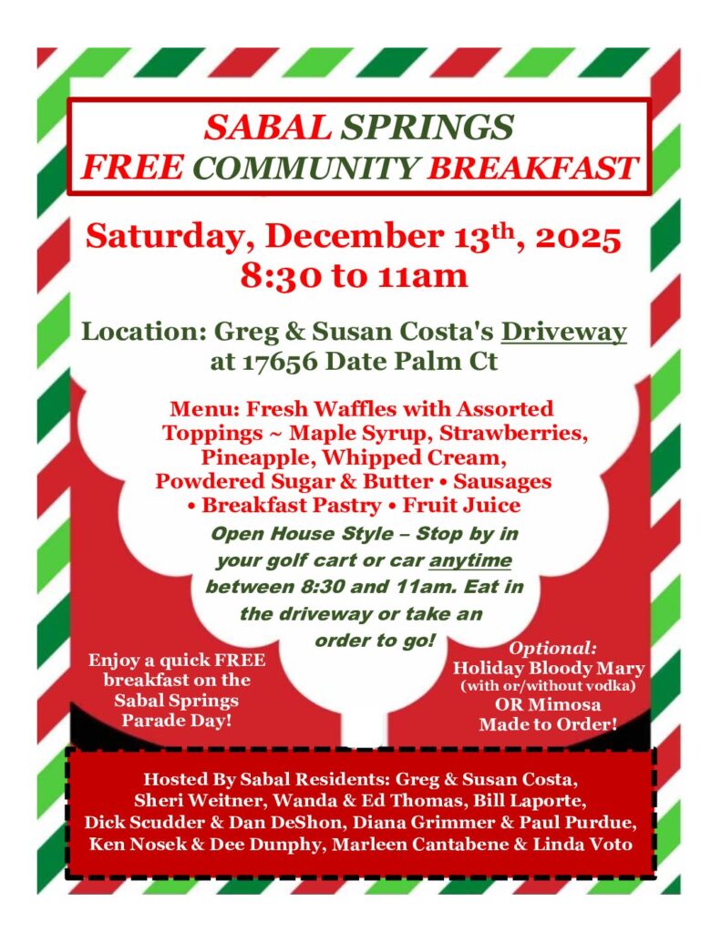 SABAL SPRINGS FREE COMMUNITY BREAKFAST