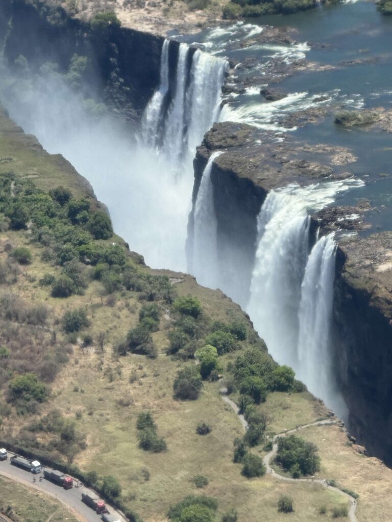 Day 13 – Friday: Early call to visit the magnificent Victoria Falls. This guided half-day walking tour did not disappoint. We went past one of the biggest baobab trees in the region. These gigantic and ancient trees are characteristic of the African bush. From there we toured around the falls taking in a number of different viewpoints, including the Devil’s Cataract, Danger Point, and others. One vista was more spectacular than the last. After seeing the Falls from the land, several of us opted for a helicopter tour to view the scenery from the skies. We were not only treated to amazing vistas, but we had the chance to see both giraffes and elephants migrating across the land.