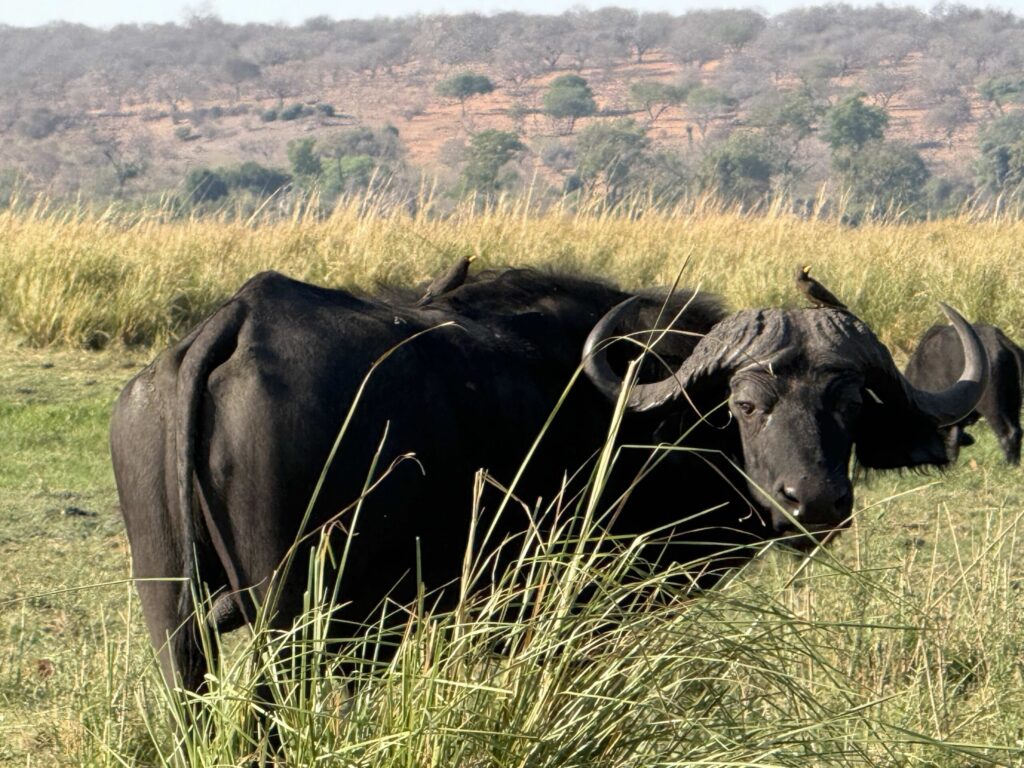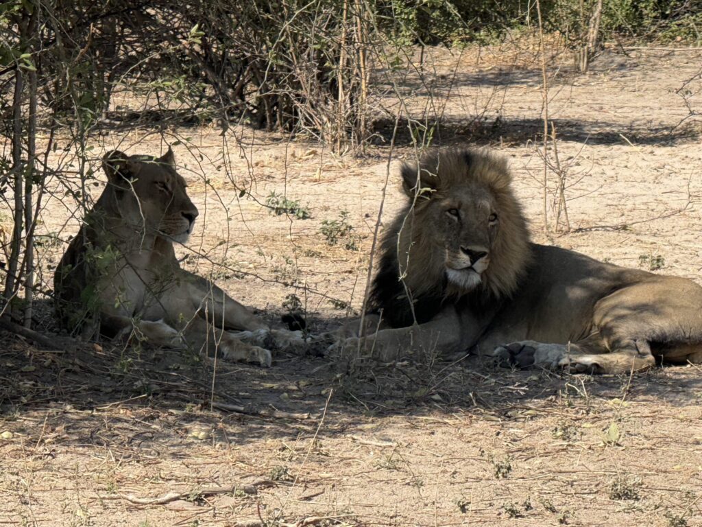 Day 14 – Saturday: We were back in safari mode—for a morning game drive. We entered the park as the sun was rising and our guide got the call of a lion and lioness sighting—fulfilling our final “big five”—what a thrill. We returned to the lodge excited and ready for our next adventure that afternoon a boat cruise down the Chobe river. We were treated to multiple hippos, one even chased our boat, a pride of lionesses, Cape buffalo and another spectacular sunset.