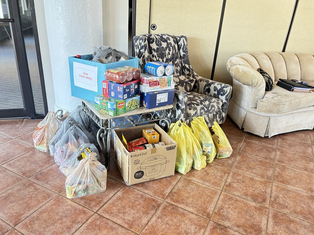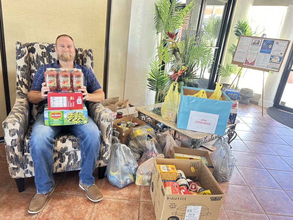 This is the community that just keeps on giving. Our new Eagles Landing Restaurant General Manager Scott Russ announced a three-day food drive on Facebook for our local Veterans. And once again, our residents responded overwhelmingly with all types of food donations.