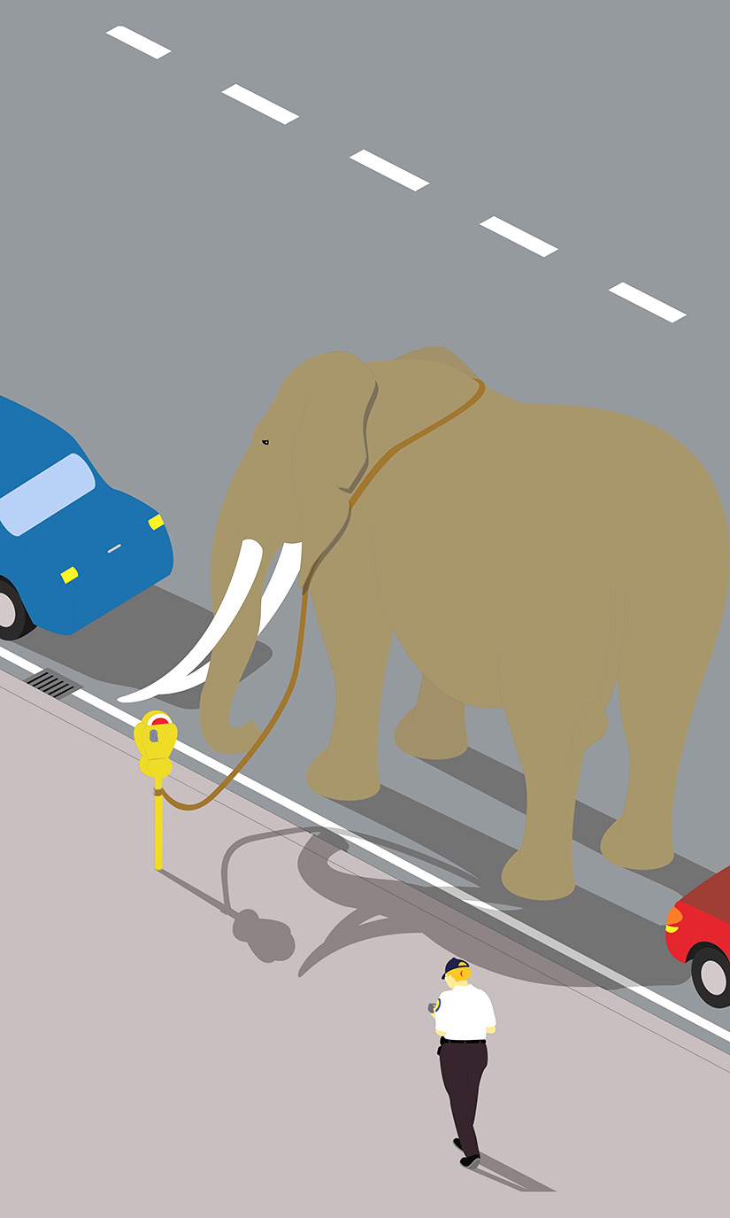 2. Tying an elephant to a parking meter requires paying the meter as if it were a car.
