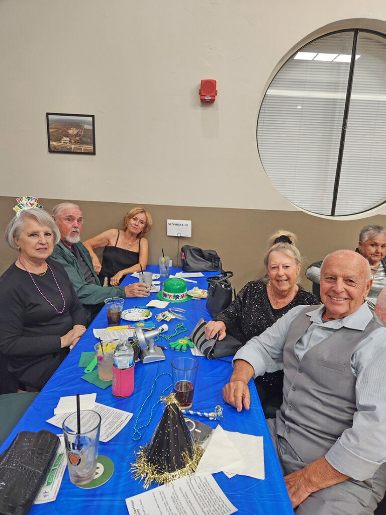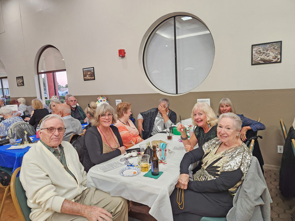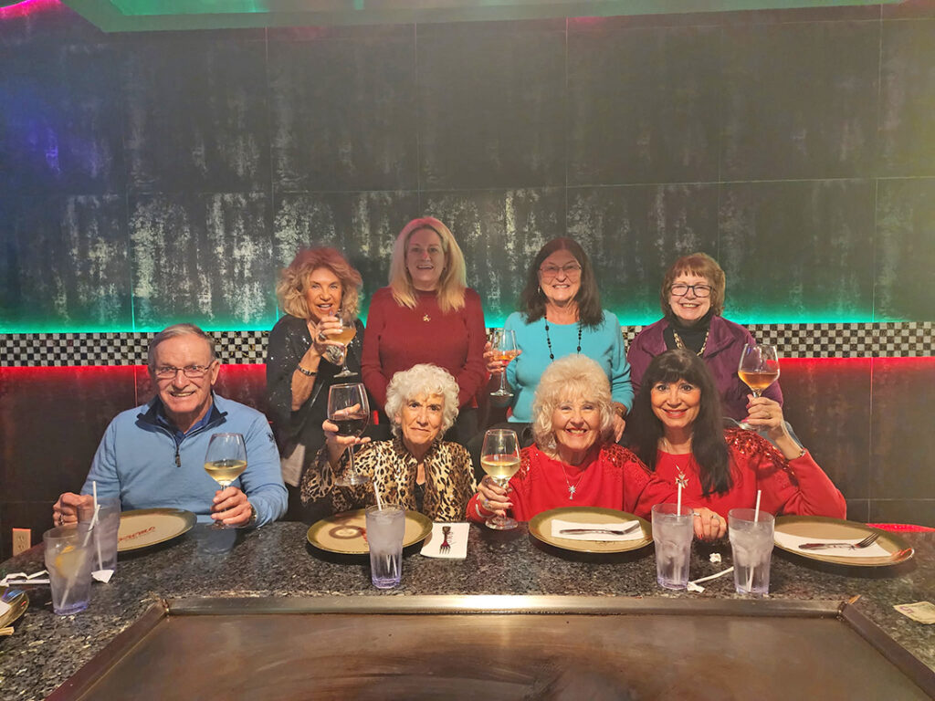 The SunShine Singles had a great December meeting as it was a potluck with a large food selection, a gift exchange, and another record number of attendees. We enjoyed the holidays by attending the “Lite Bites” Christmas Eve at the Eagle’s Landing and an open-house Christmas Day at the home of Donna Milbee. The party goers brought food, played games, watched football on TV, and drank apple pie cider (mixed with Amaretto) made by Donna. Many members cheered out 2025 and welcomed in 2026 at the New Year’s Eve Party at the Eagle’s Landing. Mike Bollea was the emcee of the event and kept the music lively as people ate and then got out onto the dance floor. More than 20 members of our group enjoyed this event. Another group from the SunShine Singles went to the Japanese Kumo Restaurant for Hibachi. The group enjoyed the show of having the chef prepare their meal at the table and the food was delicious.