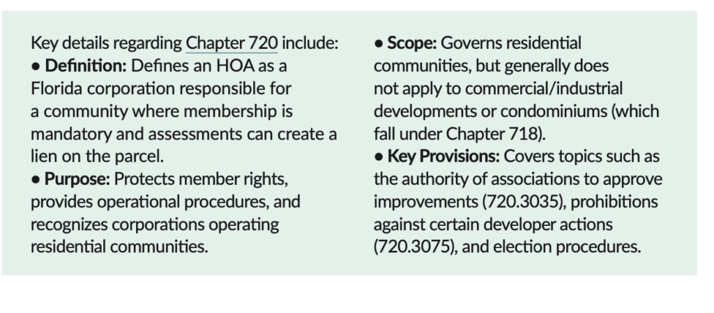 Chapter 720 is specific to Homeowners Associations.